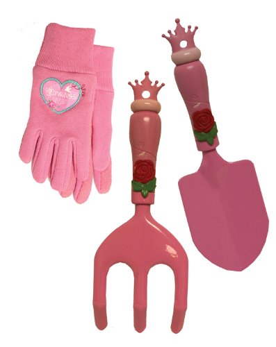 This Disney Princess gardening pack will get your child excited about helping out in the yard. This combo pack includes a jersey glove, metal garden trowel and a metal cultivator. These items will help the toddler continue the Disney theme of "Where Dreams Begin". These are perfect for the little princess to dig around in her garden.Customer Reviews